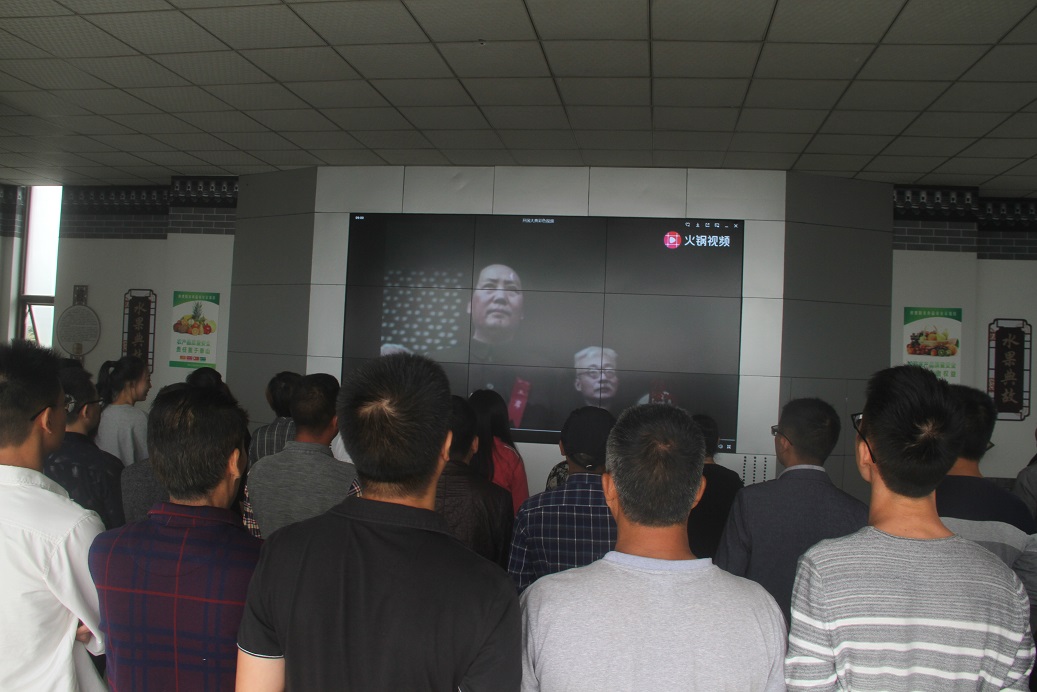 升旗儀式結(jié)束后,全體員工共同觀看彩色高清的開國大典影像資料。